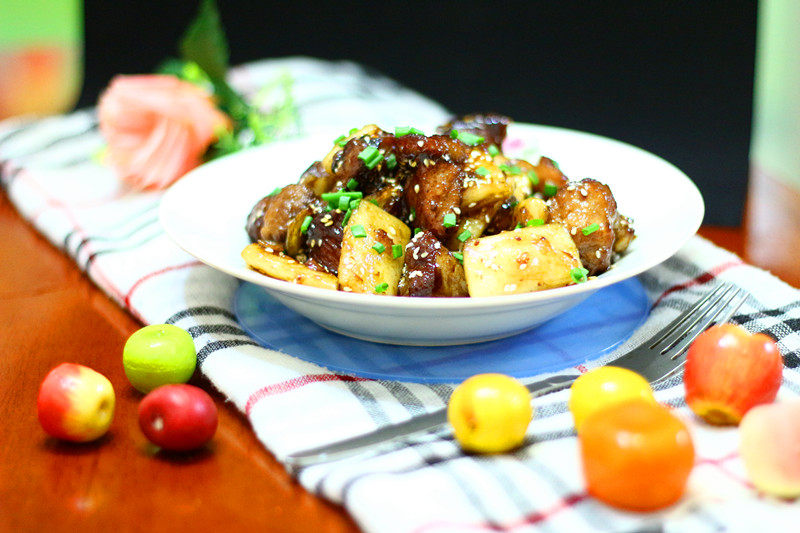 12:小火焖10分钟,大火收汁,收汁放1汤匙香醋,出锅撒适量白芝麻。