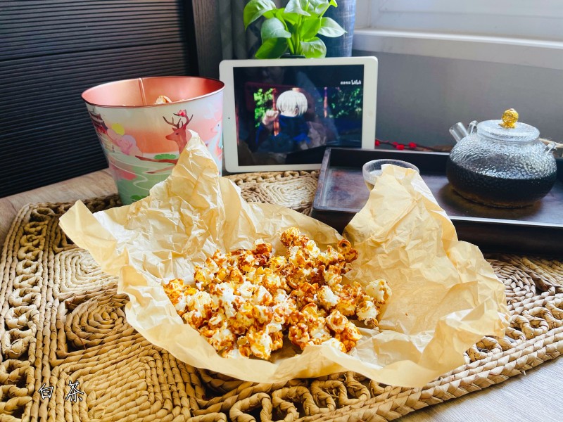 5:等到没有噼里啪啦的声音的时候,打开锅盖,倒出爆米花晾晾。