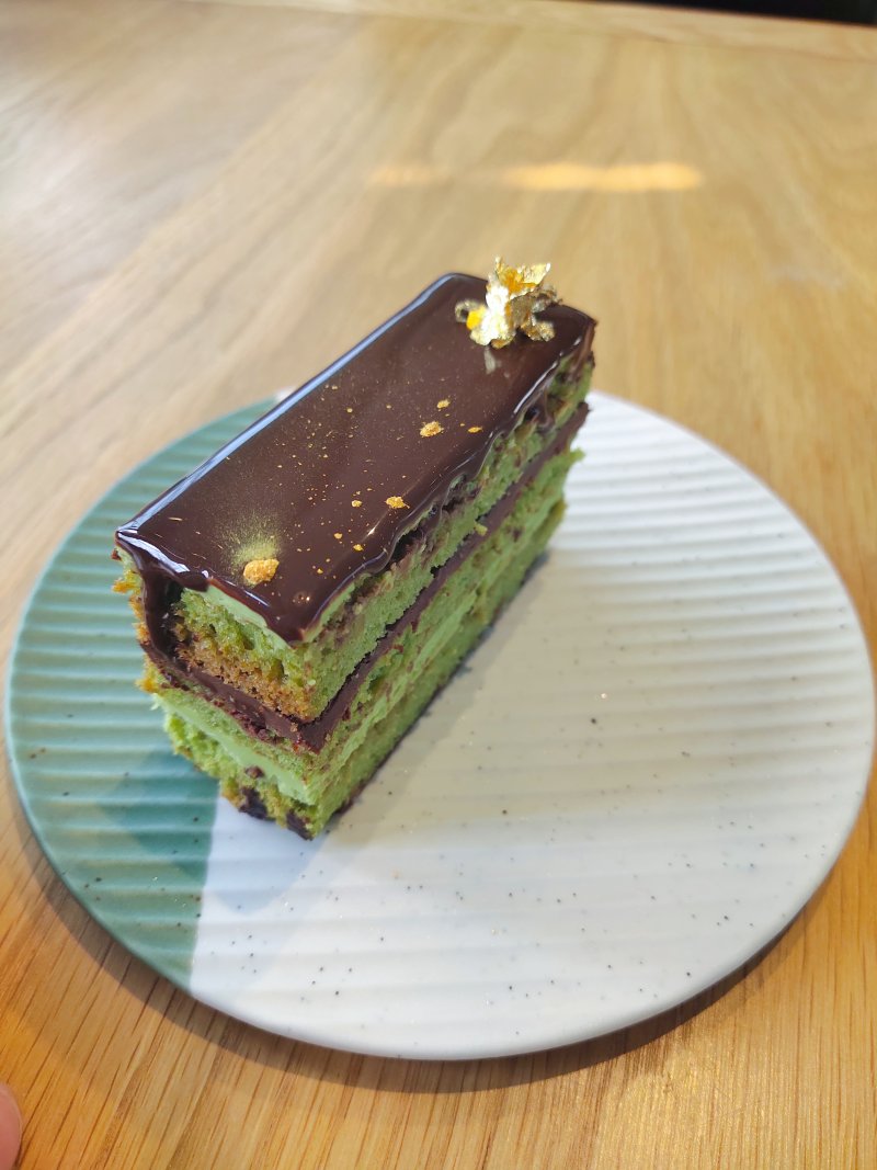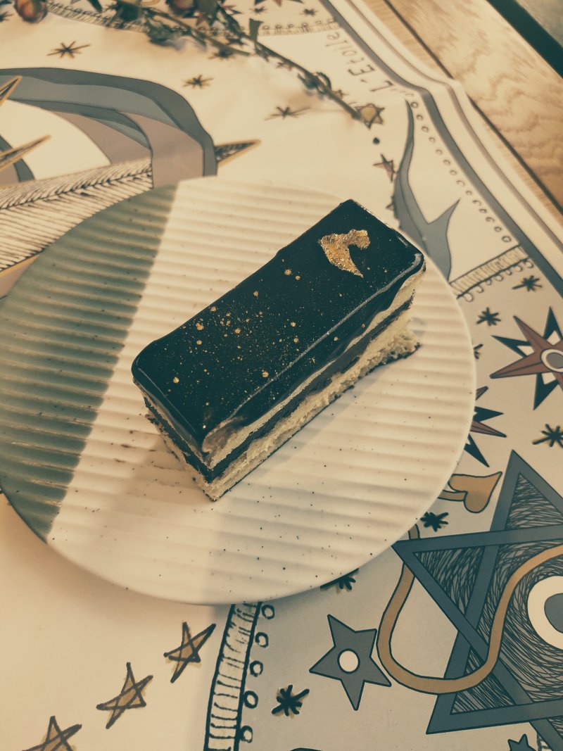 31:切块后撒上金粉放上金箔装饰还可以装饰上音符巧克力。