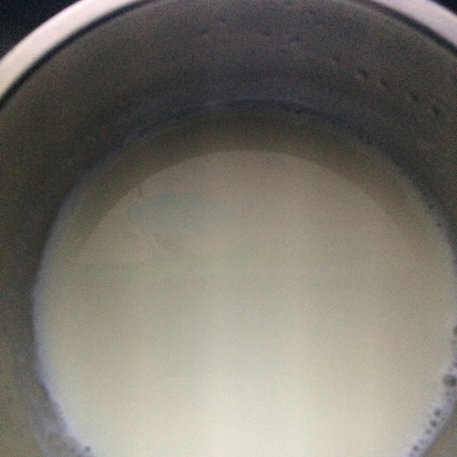 1:新鲜牛奶加糖煮开,如果想要更浓些,就多煮一会儿,让水分再蒸发掉些。我是煮开就关火
