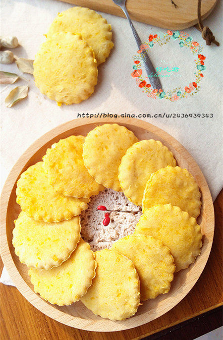 3:蛋黄,粘米粉,南瓜泥搅拌匀。