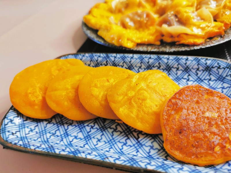 1、南瓜面糊搅拌后是可流动的状态,倒入锅中不要着急翻面,看到边上冒小泡泡,周围变色再翻面。2、面糊倒入锅中时轻轻晃动面糊,使面糊成为你想要的形状就可以。3、用榨汁机将南瓜打成泥是为了节省蒸南瓜的时间,如果没有榨汁机,可以将南瓜蒸熟后捣成泥跟鸡蛋面粉混合均匀也是一样的。