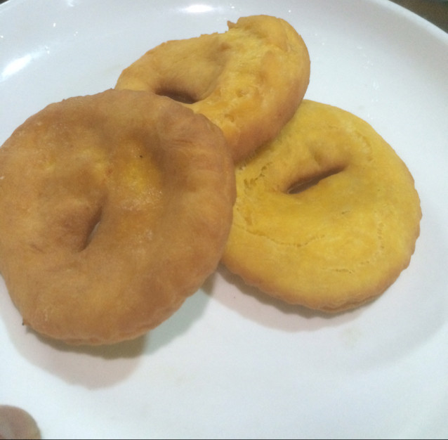 6:油温烧至五成热,下入生坯,炸至两面金黄,鼓起来就行。