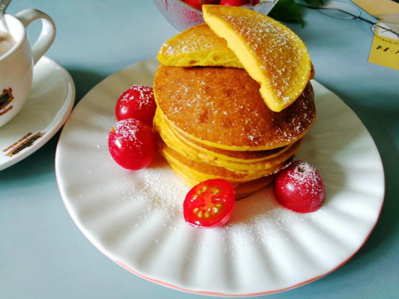 6:稍加点缀就可享用这道软糯松弹的奶香南瓜松饼啦。