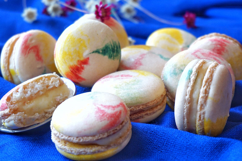 1.烘烤马卡龙要根据自己家烤箱的温度来调节。温度太高,太低都是造成马卡龙空心或者不出裙边的原因。2.蛋白一定要打到硬性发泡,光滑细腻有弹性的状态。3.如果你不会判断马卡龙是否烤熟,马卡龙的裙边涨到最大点会回落,等裙边回落后再烤2分钟应该就差不多了,用手按一按如果按下去底部有硬度了那就是熟了。