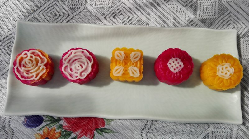 冰皮月饼预拌粉300;胡萝卜汁100;火龙果汁100;牛奶100;