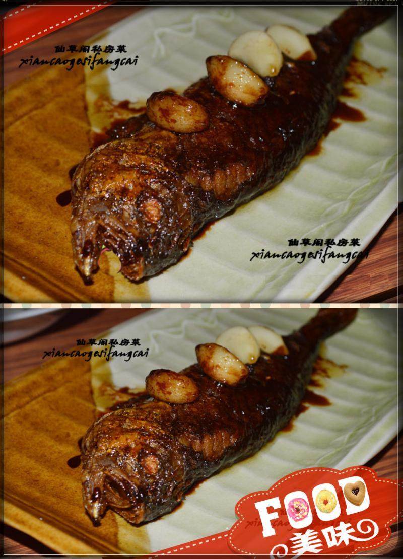 11:盛盘,上桌,放入蒜头装饰,咸鲜可口,酸甜适中,干烧黄鱼,我爱吃,你爱吃吗~~~