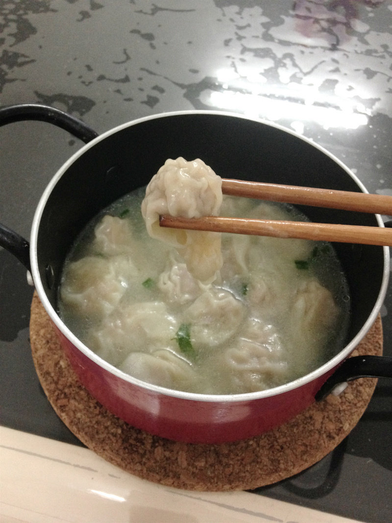 (tip:1、想味道更好,建议熬上一锅骨头汤,撒点葱花,就更美味了!2、吃不完的云吞要一只一只分开放好,不要黏在一起。放冷藏室储存。)