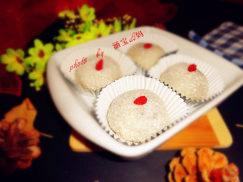 糯米粉75g;澄粉25g;蜜豆馅适量;椰蓉适量;