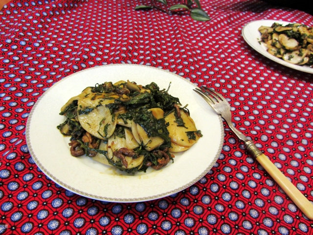 12:翻拌一番后,菜叶就不太热了,放入蒜泥。