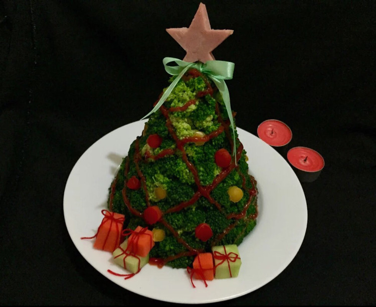 11:美丽的圣诞树沙拉就做好了,既健康又美味。