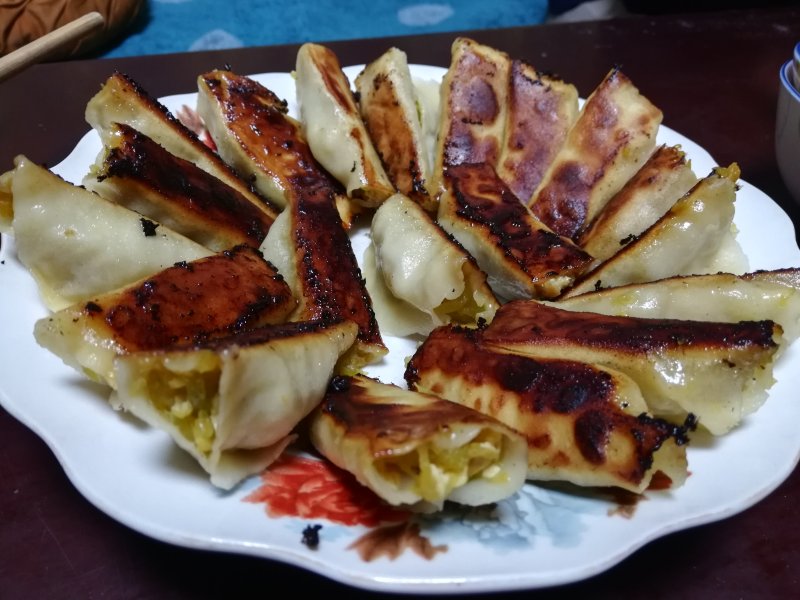 4:倭瓜、炒碎的鸡蛋分钟盘中,加芝麻油、芝麻油盐味精葱姜。
