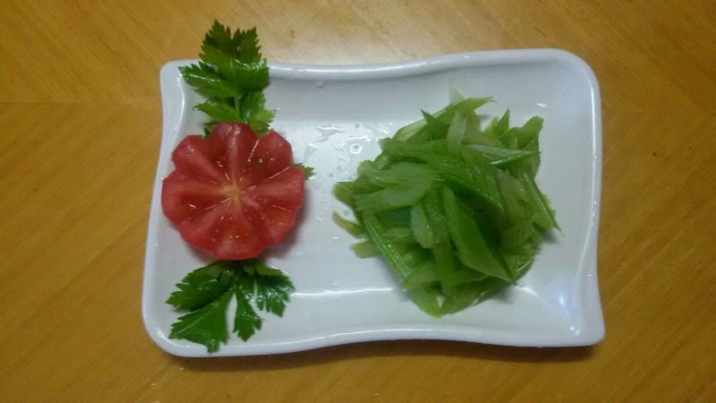 1、这道菜吃的就是芹菜的清爽、清香,所以只用了简单的精盐和味精2、沸水焯烫、再过一下冷水的芹菜,既保持碧绿的颜色,也保留清脆的口感3、加入枸杞子不仅有营养,也增加了菜品丰富的色彩