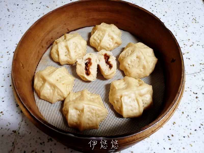 3:包子馅:70克核桃碎,40克红糖,30克白砂糖,10克面粉。