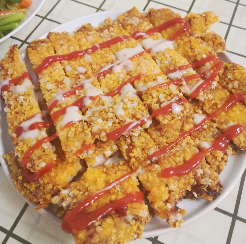 胡椒粉少许;牛奶适量;盐少许;鸡蛋一个;面粉适量;淀粉适量;食用油适量;韩式辣酱一勺;番茄酱一勺;葱少许;蒜适量;蜂蜜一勺;白芝麻少许;