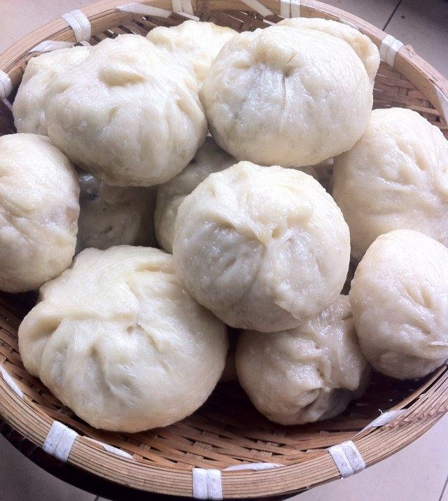 5:将发好的面团揉成长条,切成剂子,擀成面皮包上馅儿,放20分钟左右,冷水上笼小火蒸好即可
