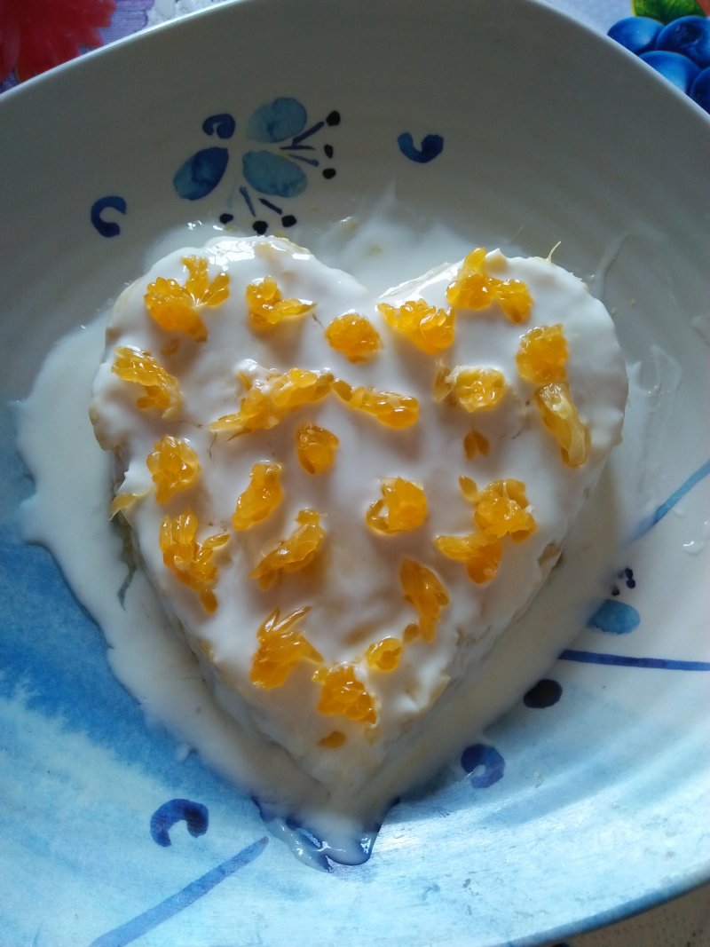2:将番薯做成心型,再倒上适量酸奶,放上适量橘子粒