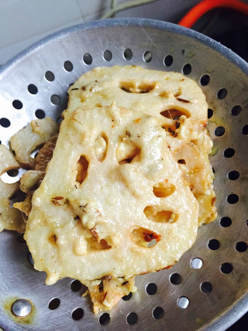 没有裹炸粉,可以用玉米淀粉代替。炸好的藕片可以撒孜然粉或者辣椒粉吃。