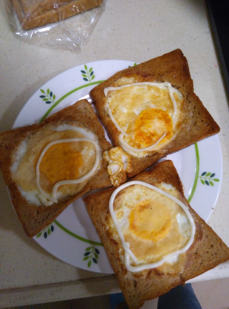 9:做了一个三明治,又做了一个蛋土司配午餐肉,不知叫啥,就叫它大宝的爱。