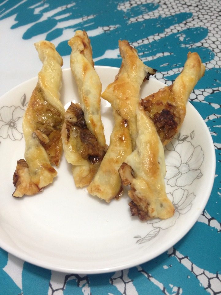11:派皮底部用小叉子扎一些小孔,倒入拌好的核桃馅。