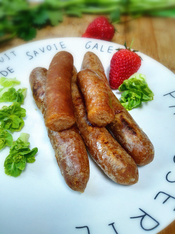 10:煎好的脆皮肠放入盘中摆好
