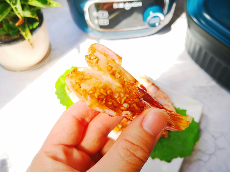 4:空气炸锅180度预热5分钟,然后把虾放入空气炸锅180度8分钟即可装盘。