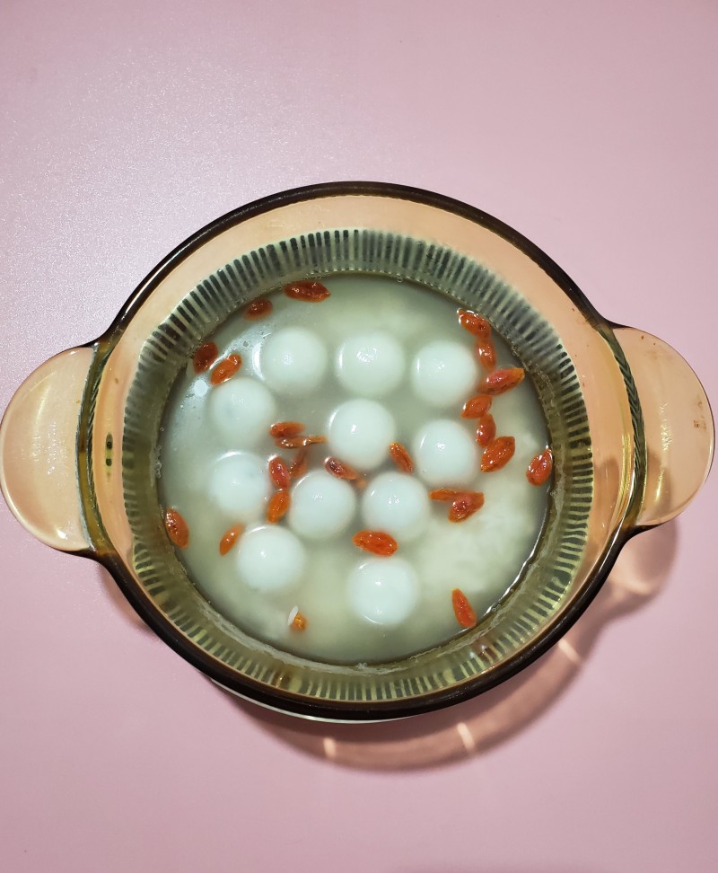 4:甜酒大约煮5分钟,把杞子放入