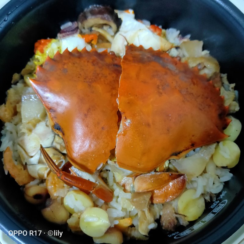 红鲟一只;莲子适量;米饭适量;鱿鱼干适量;虾仁适量;猪肉适量;香菇适量;