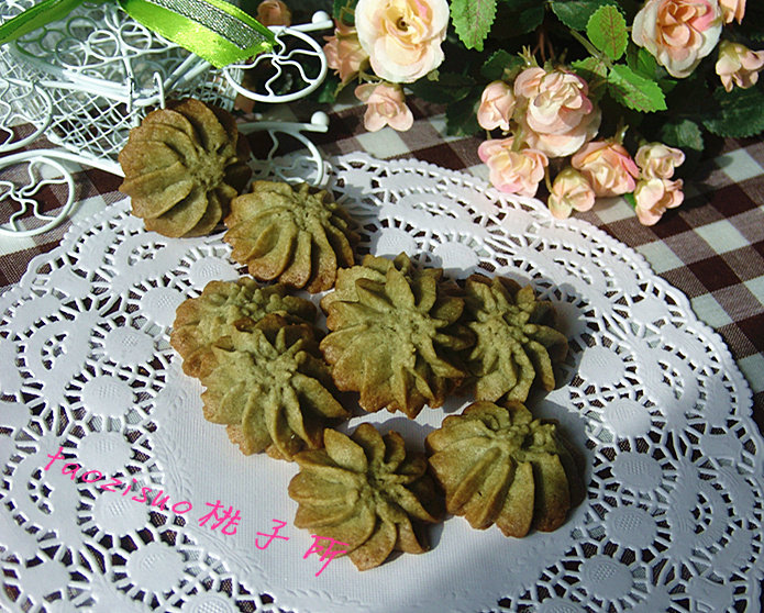 黄油120克;糖粉60克;蛋黄1个;低筋粉150克;抹茶粉10克;玉米淀粉20克;