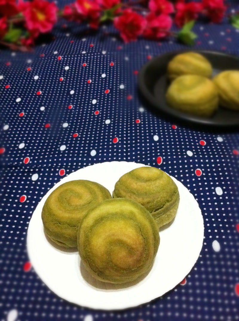 13:出炉,晾凉后可直接食用,也可将抹茶糖粉筛在奶油球上面