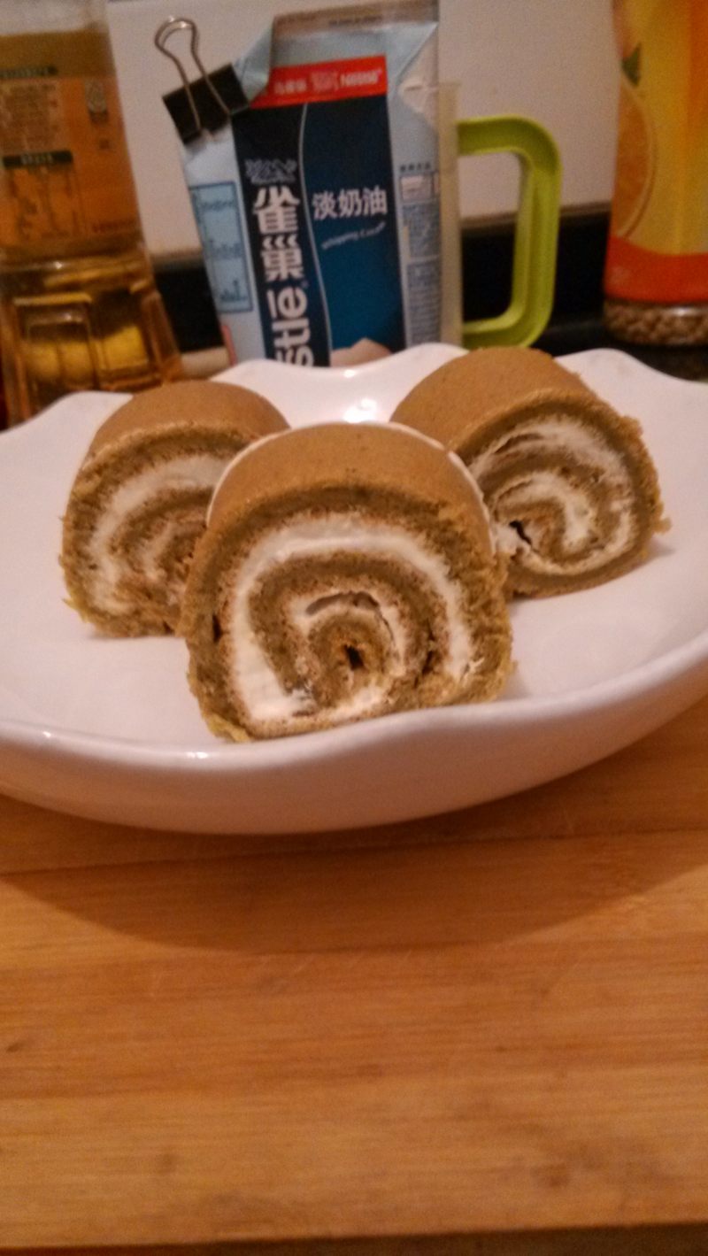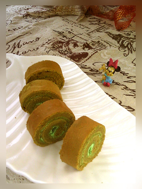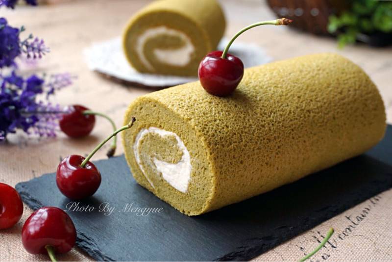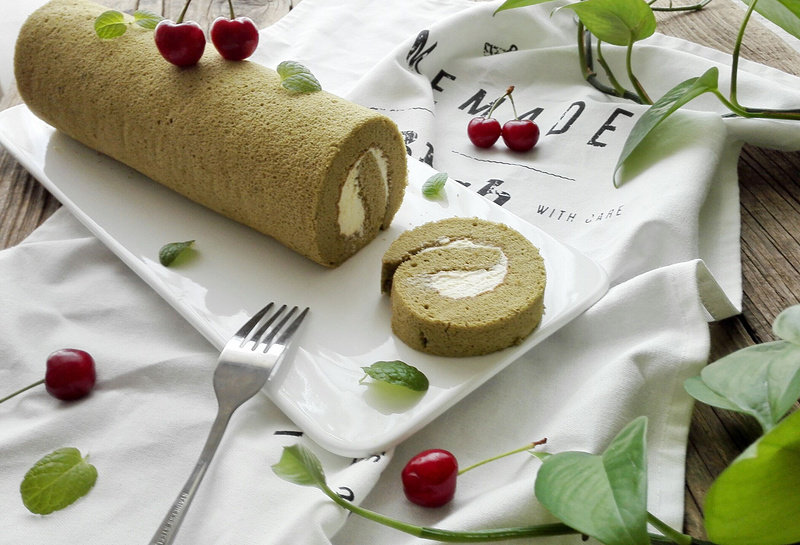 23:香甜的奶油与淡绿的抹茶蛋糕搭配,看着很清新,用勺子压出的花纹如浮雕一般,即使不擅长抹面,也一样可以做出可爱的蛋糕卷来呢