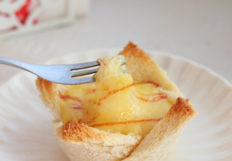 5:把处理好的吐司放入模具中,做成小杯子造型。