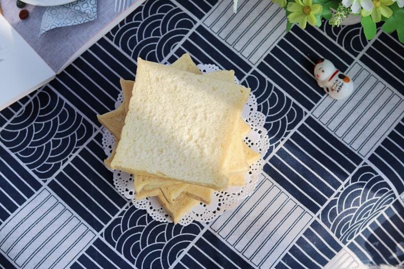 2:吐司切掉四边,尽量切成正方形,放入模具会比较好看。