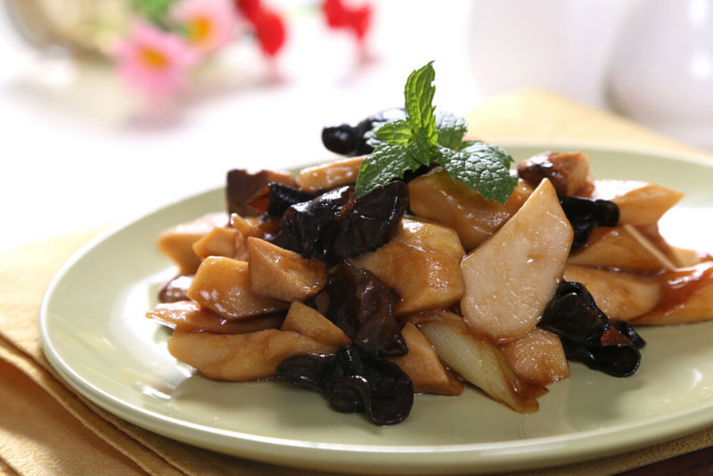1:杏鲍菇洗净切滚刀块,木耳去根洗净泥沙,撕成小块;