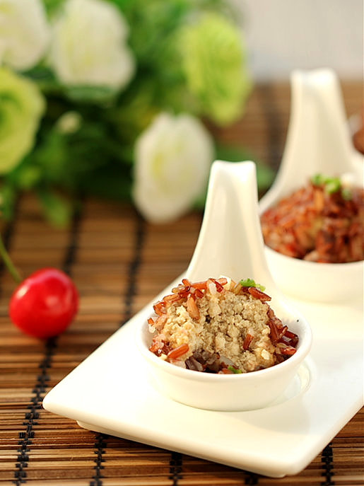 1.红米要提前一个晚上浸泡;肉馅用五花肉自己剁的更香,剁入时加入点姜;2.豆腐要选用老豆腐,豆腐与肉馅的比例是1:1,豆腐用手捏碎后与肉馅混合;3.红米因为是粗粮不易熟,所以这个红米豆腐丸子要比平时蒸的时间要长一些。