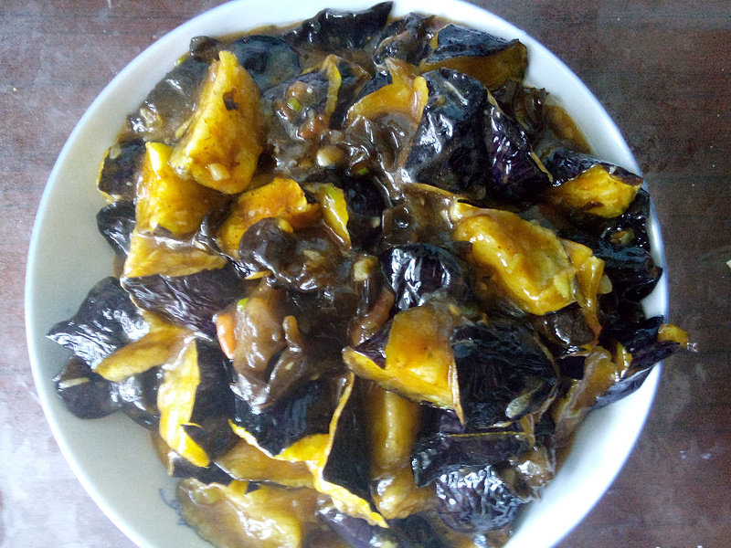 8:放料汁,盖上锅盖焖上三几分钟至茄子熟软。