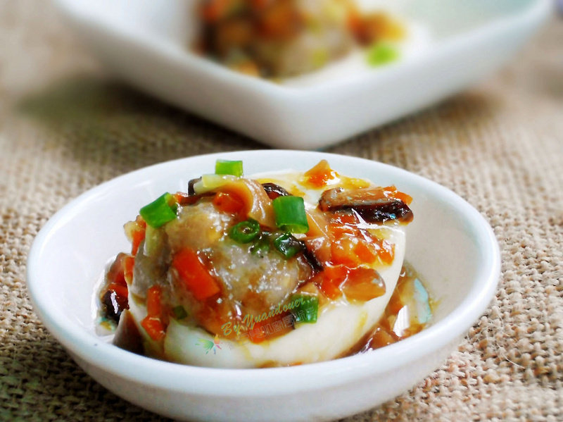 9:然后淋在鸡蛋肉丸子上就可以了,再洒点葱花好看。