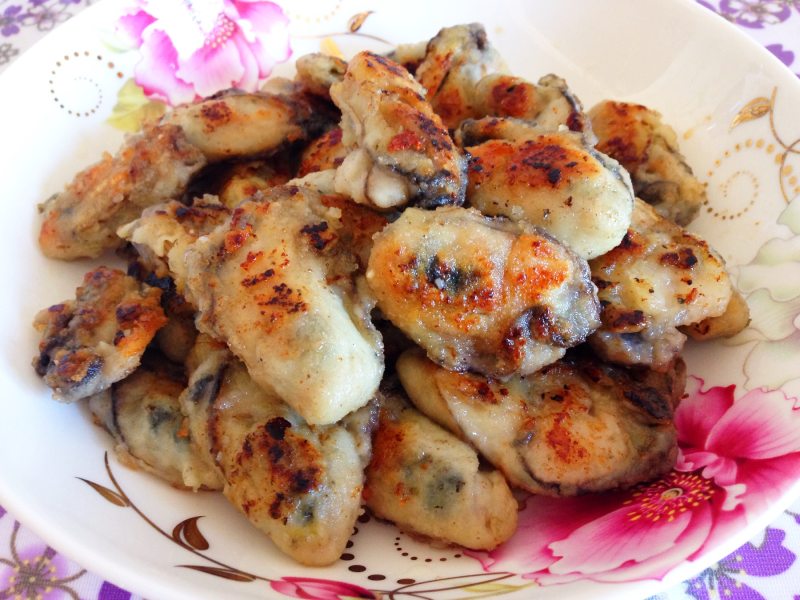 5:热锅热油下拌好的海蛎小火慢煎,定型后反一面