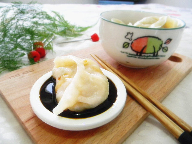 9:捞出饺子,倒点陈醋蘸汁更美味。