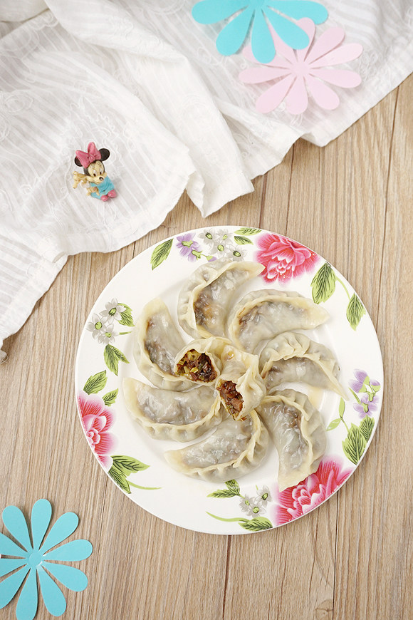 10:鲜菇用开水抄一下,切成丁放到肉馅搅拌均匀