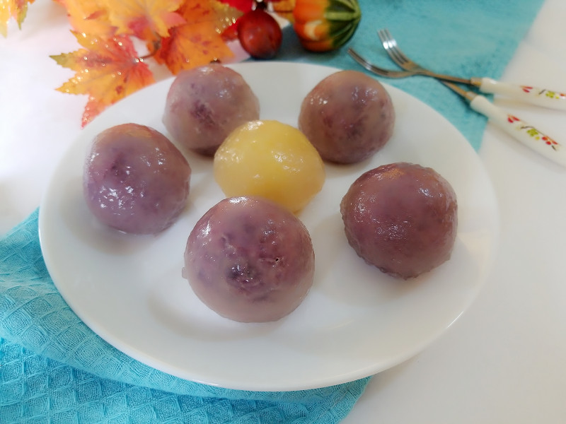 4:把紫薯分25克一份,揉成团。(我紫薯只分了14个,其余的做了奶黄馅。)