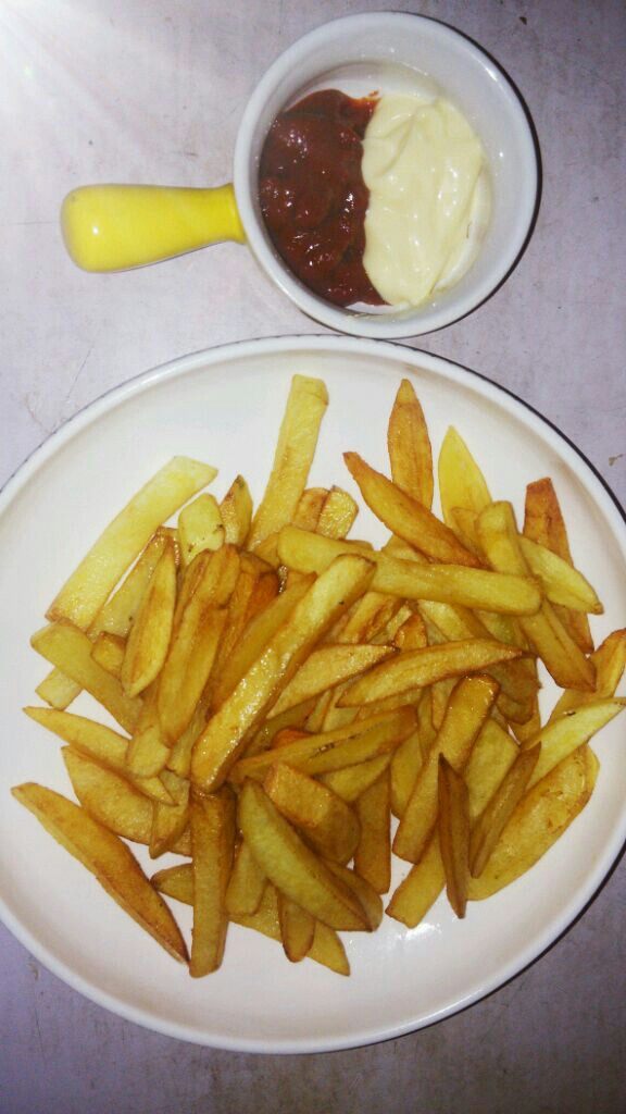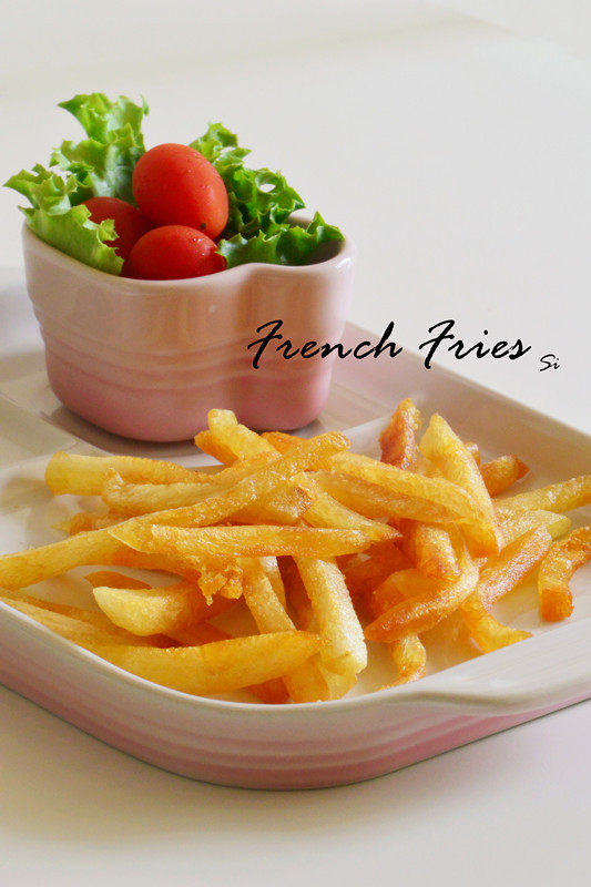 3:薯条尽量切均匀些。我刀工不好所以就切成这样了。