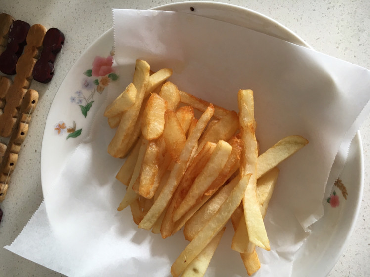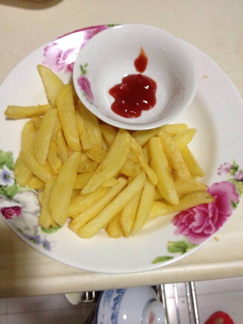5:捞出后放在厨房用纸上吸去多余的油,撒上少许盐,配上番茄酱即可。