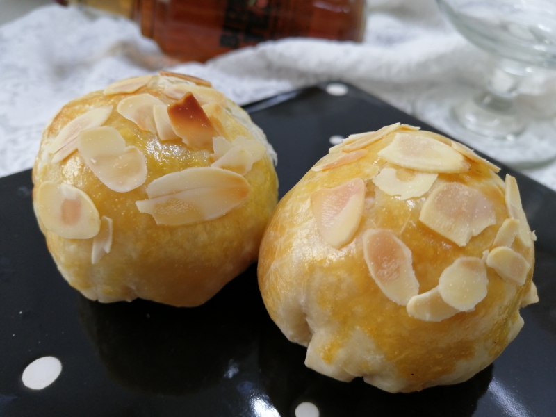 10:收口向下,刷蛋黄液,撒杏仁片。