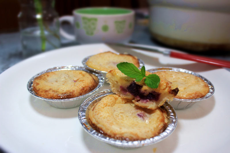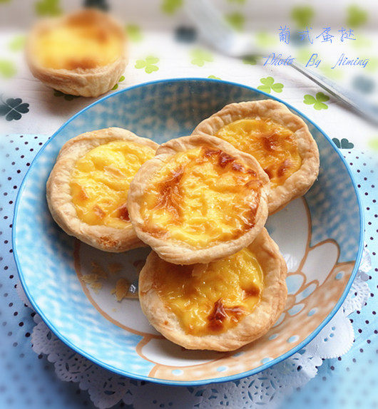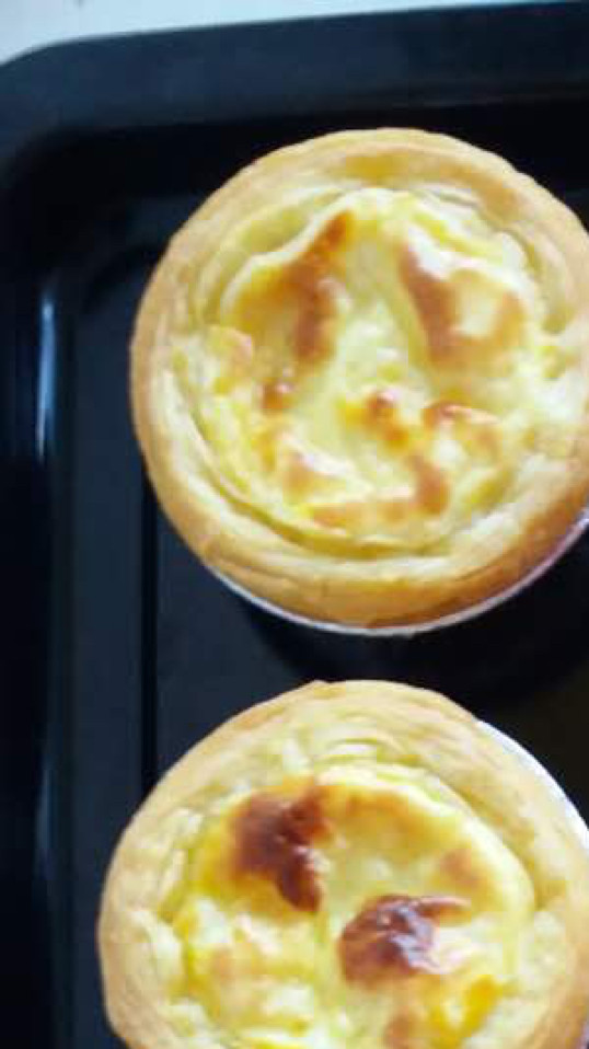 13:烤箱预热后放入,中层200°烤25分钟左右,蛋挞表面有焦斑即可。