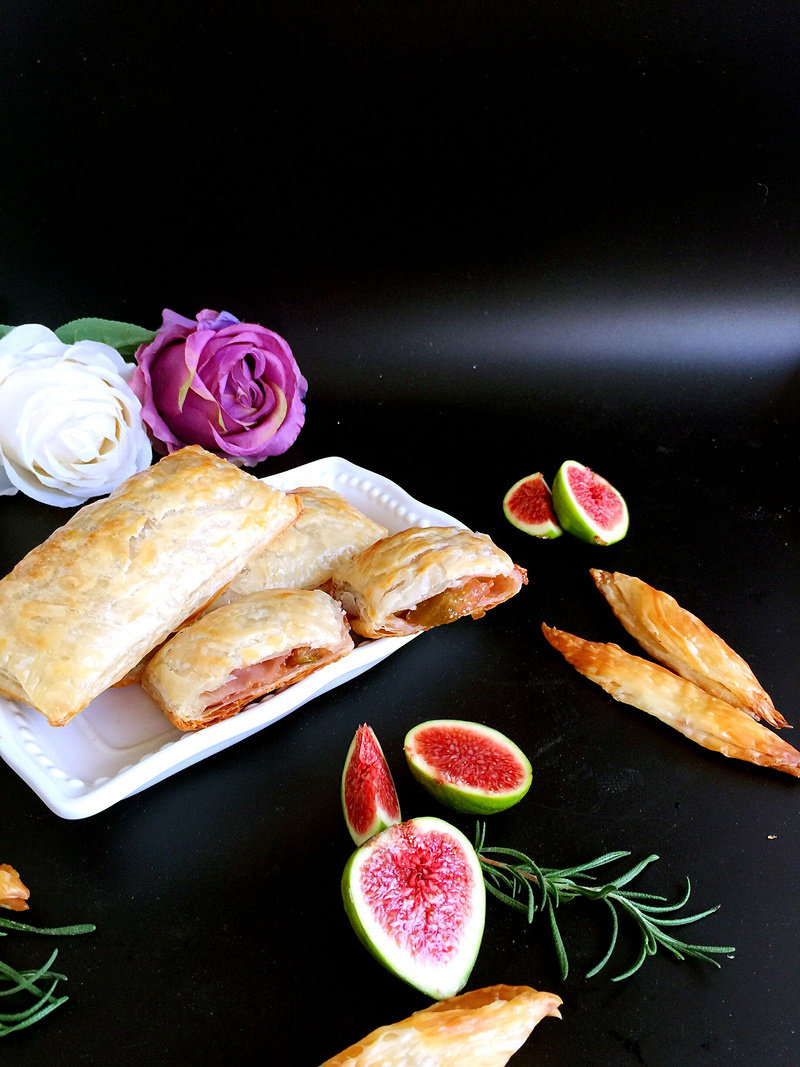 8:取出冷冻的飞饼皮,放冰箱冷藏松驰15分钟左右,然后切去四边成正方形,再在中间对半切开