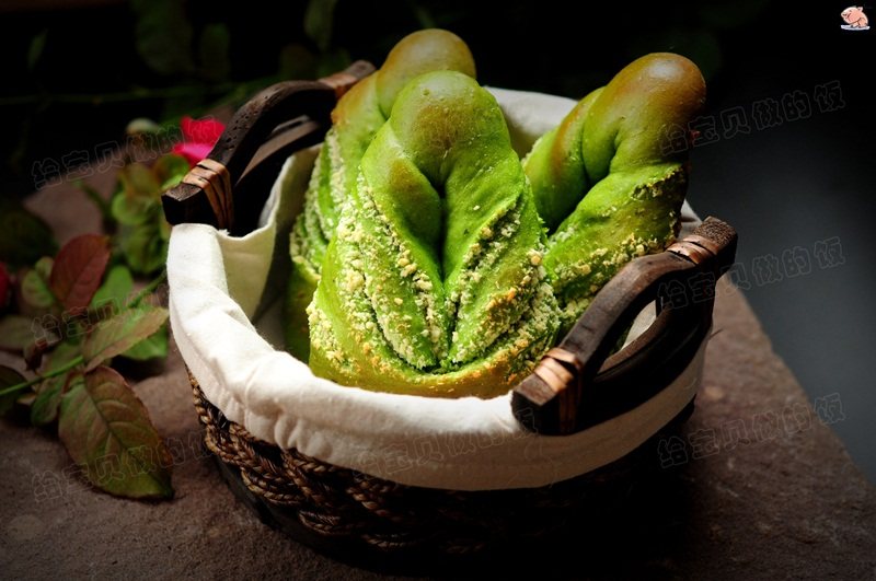 17:烤箱预热,170度17分钟左右。为保持绿色的颜色,中途要加盖锡防止上色过重。