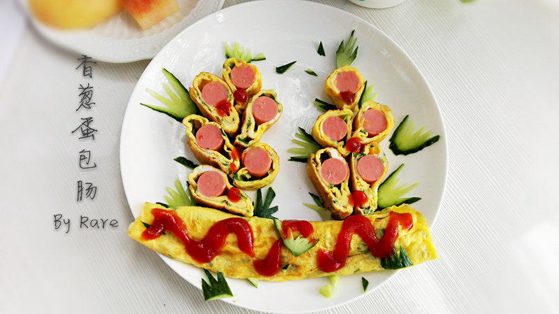 5:.随意切摆,方便食用。宝贝爱配蕃茄酱食用,就再挤点蕃茄酱。