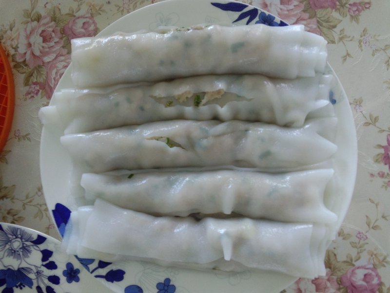 5:把肉肠都卷好放在盘子上面就可以开始隔水蒸8分钟就行了