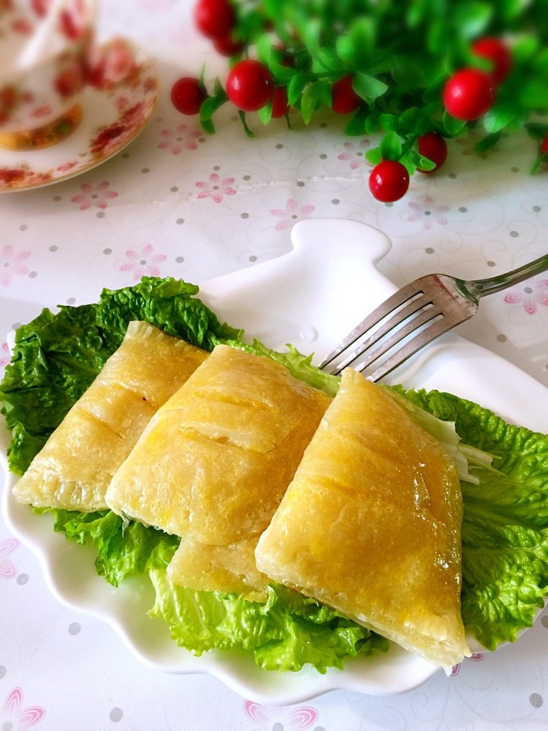 7:像包饺子一样包上。形状随意,不要咩太紧。以免影响后面起酥!